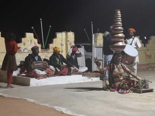 S’en est suivi un petit coucher de soleil sur les dunes et un spectacle de musique et de danse indienne autour d’un bon repas végétarien et d’un feu. Motivés comme jamais à cause du froid, nous avons pris notre courage à deux mains et sommes allés dormir dans le désert. Nous n’avons pas trop souffert car nous étions finalement dans des petites tentes.