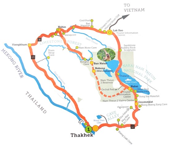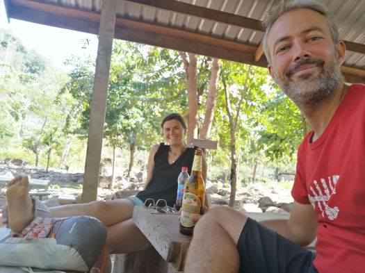 Arrivés à Thakhek nous rejoignons notre guesthouse qui s’avère être un repère à français ! C’est plutôt agréable de parler notre langue. Les gérants sont super cools et nous donnent plein d’infos sur la boucle qu’on fera le lendemain en scooter. Ils sont aussi légèrement éméchés, ça doit être comme ça tous les jours, pas facile la vie au Laos !