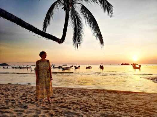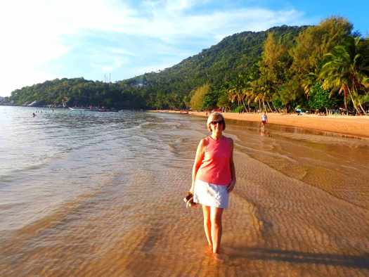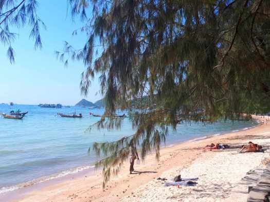 Nous nous baignons à la plage de Sairee Beach bien ombragée de palmiers le matin. On alterne les baignades bien agréables parmi les bateaux dans une mer turquoise et chaude avec les pauses sur le sable.