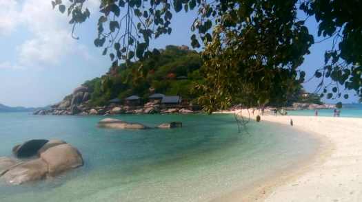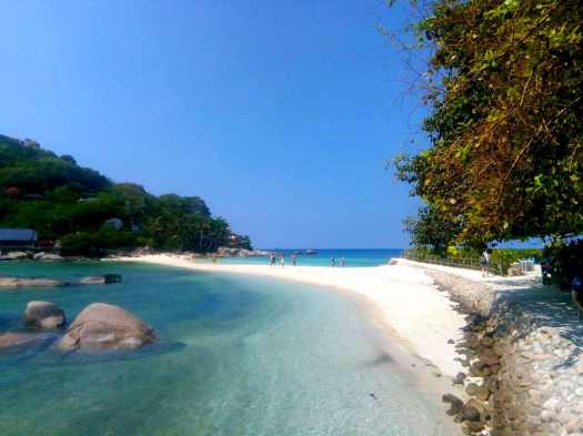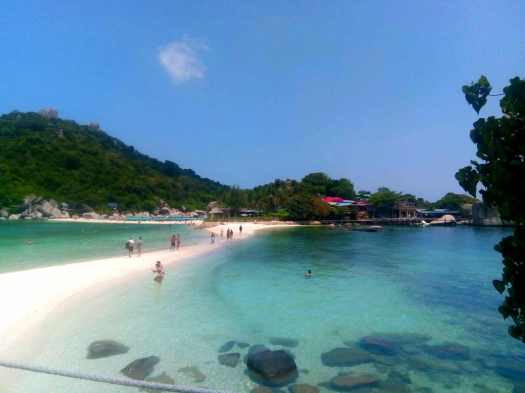 Le premier arrêt se fait à Koh Nang Yuan : deux petits îlots connectés par un banc de sable, plage de rêve, sable fin et blanc, eaux translucides…