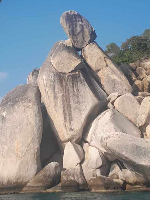 Les rochers arrondis nous font penser à la côte de granit rose en Bretagne.