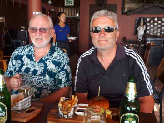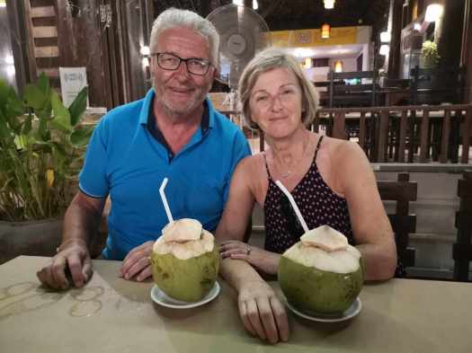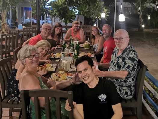 Ensuite, direction le restaurant Seashell où nous avons bien apprécié les brochettes et surtout la gentillesse du serveur thaï, prénommé Nine, très prévenant surtout avec Jean-Pierre ! Nous avons goûté toutes les brochettes. Le dernier soir, notre serveur préféré a tenu à nous offrir un beau poisson grillé, excellent ! Il nous a pris en photo et invité à revenir… Sait-on jamais ?