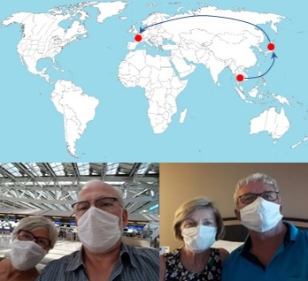 Voilà c’est reparti pour 12 heures de vol. Heureusement, l’avion est loin d’être complet et nous prenons nos aises. Nous arrivons à dormir quelques heures. Arrivés à Charles de Gaulle, il n’y a pas de contrôle de température ni de gel désinfectant, cela nous étonne !!
