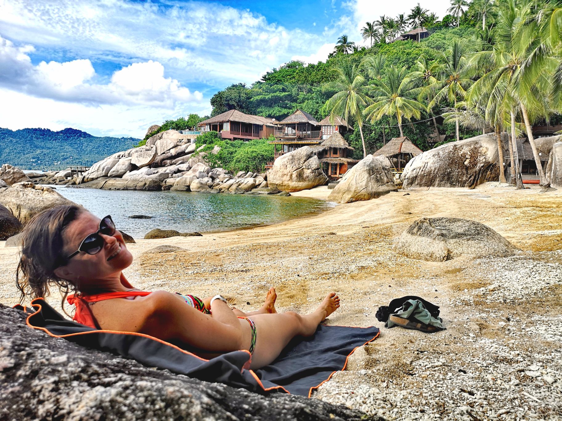 Tanote Bay est la plage que nous avons le plus fréquentée. Elle est gratuite, ombragée et surtout les fonds marins sont exceptionnels. Pour y parvenir, il ne faut pas avoir peur du dénivelé. Le point de vue du bar abandonné est magnifique.
