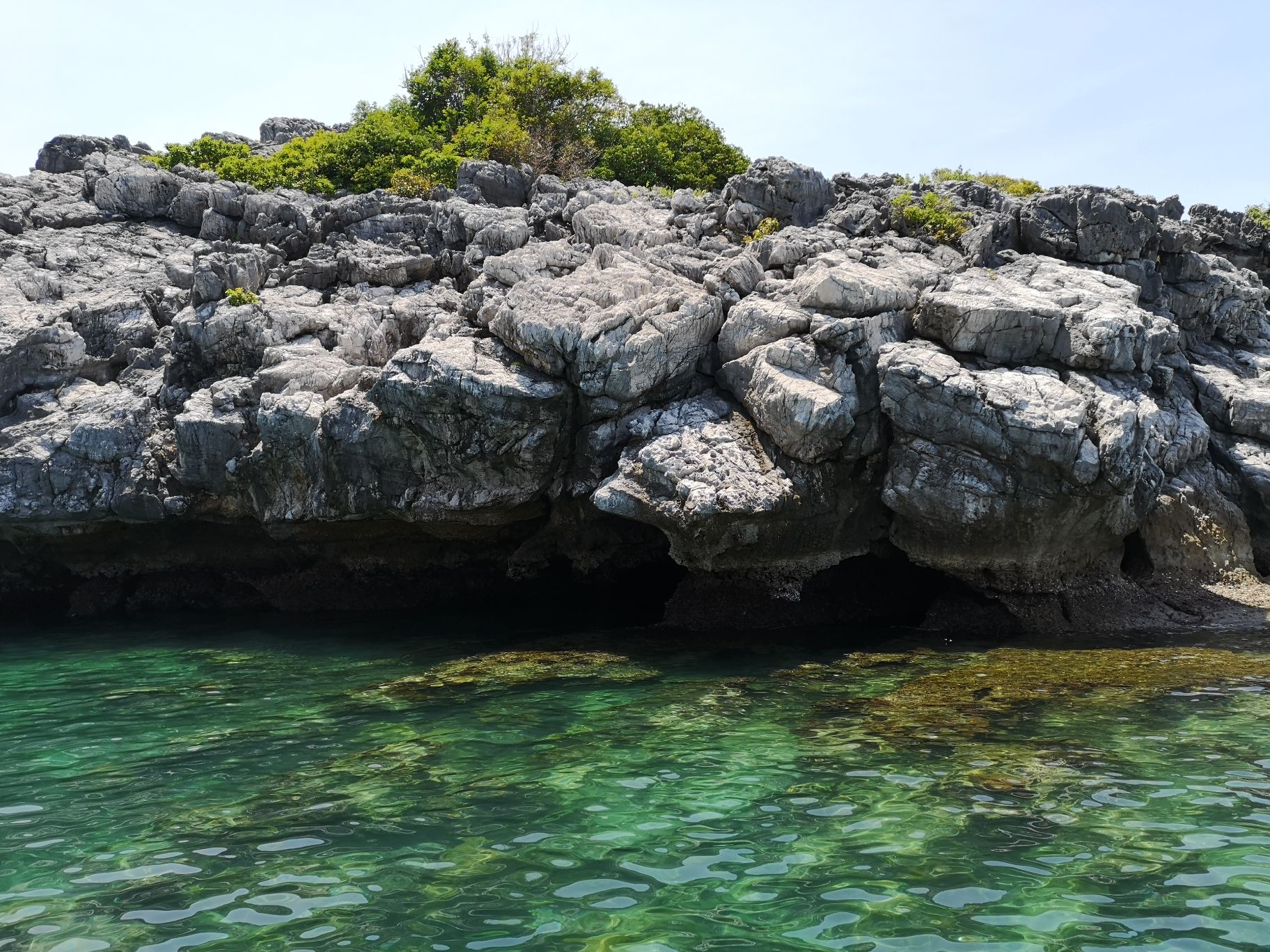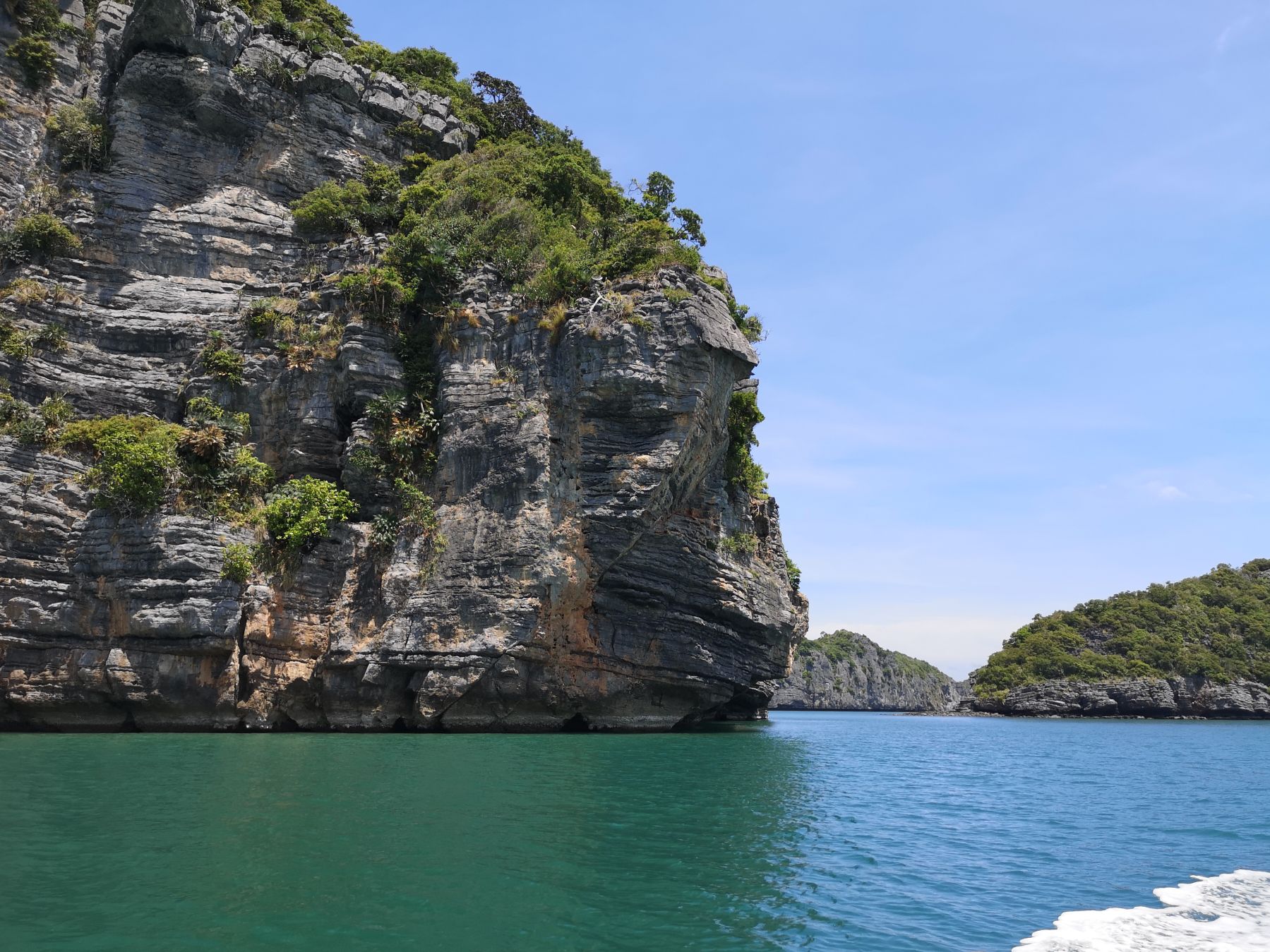 On sillonne ensuite le parc naturel pour atteindre Koh Mae Koh. Durant le trajet, nous avons le droit au classique jeu des ressemblances avec la forme des îles. Nous aurons la version du singe, de la chaussure et pour finir du pied avec une preuve par l’image.