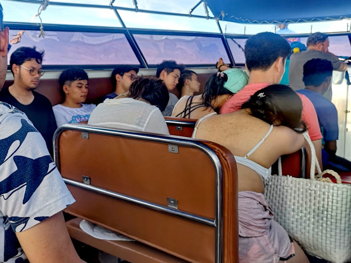 Après avoir été récupérés par un minivan à notre hôtel à 7h20, nous avons fait la tournée des popotes pour ramasser d’autres personnes. En arrivant au port, il y avait beaucoup de monde à notre grande surprise.