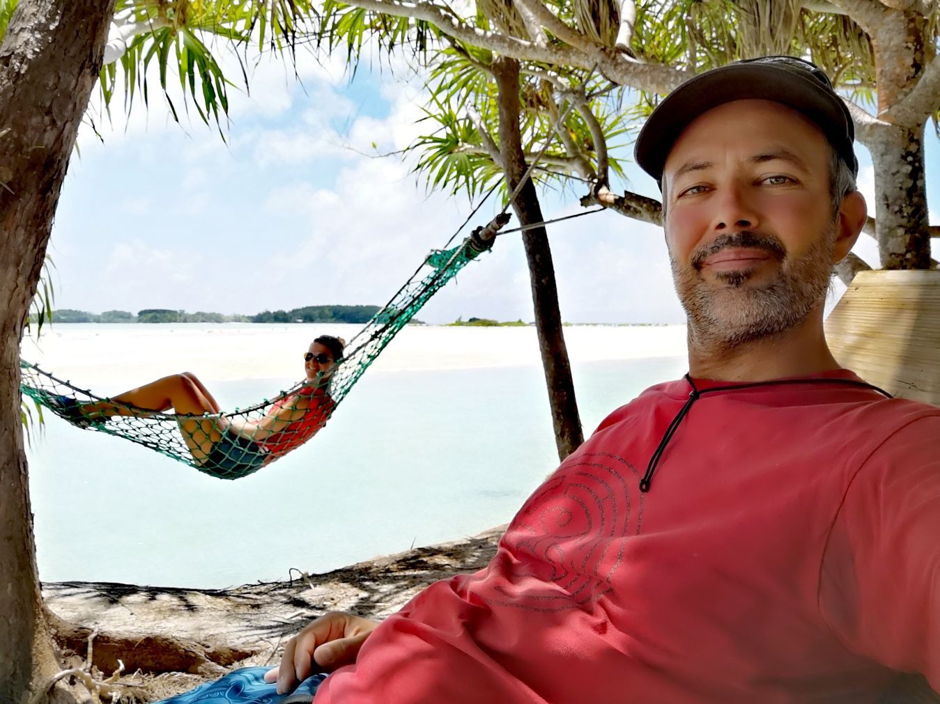 Nous avons passé un super après midi à nager dans les eaux bleues et à se larver sur le sable rose. Pas un seul touriste, l’île est à nous.