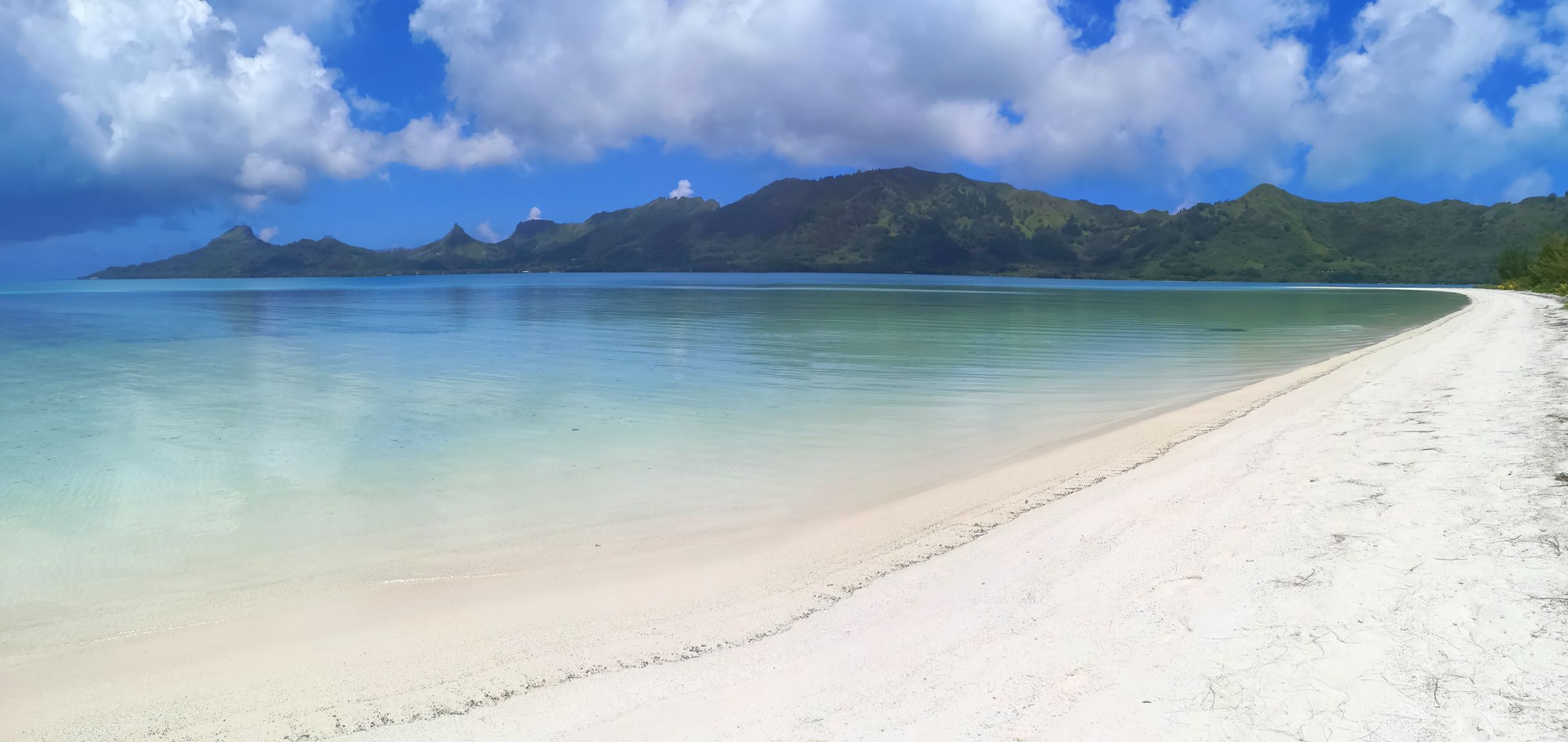 Raivavae se situe à 30 min d’avion de Tubuai notre destination précédente. C’est la 12ème et dernière île que nous découvrons en Polynésie. Il n’y a que 900 habitants ici. Nous arrivons sous un grand soleil permettant d’apprécier les couleurs du lagon.