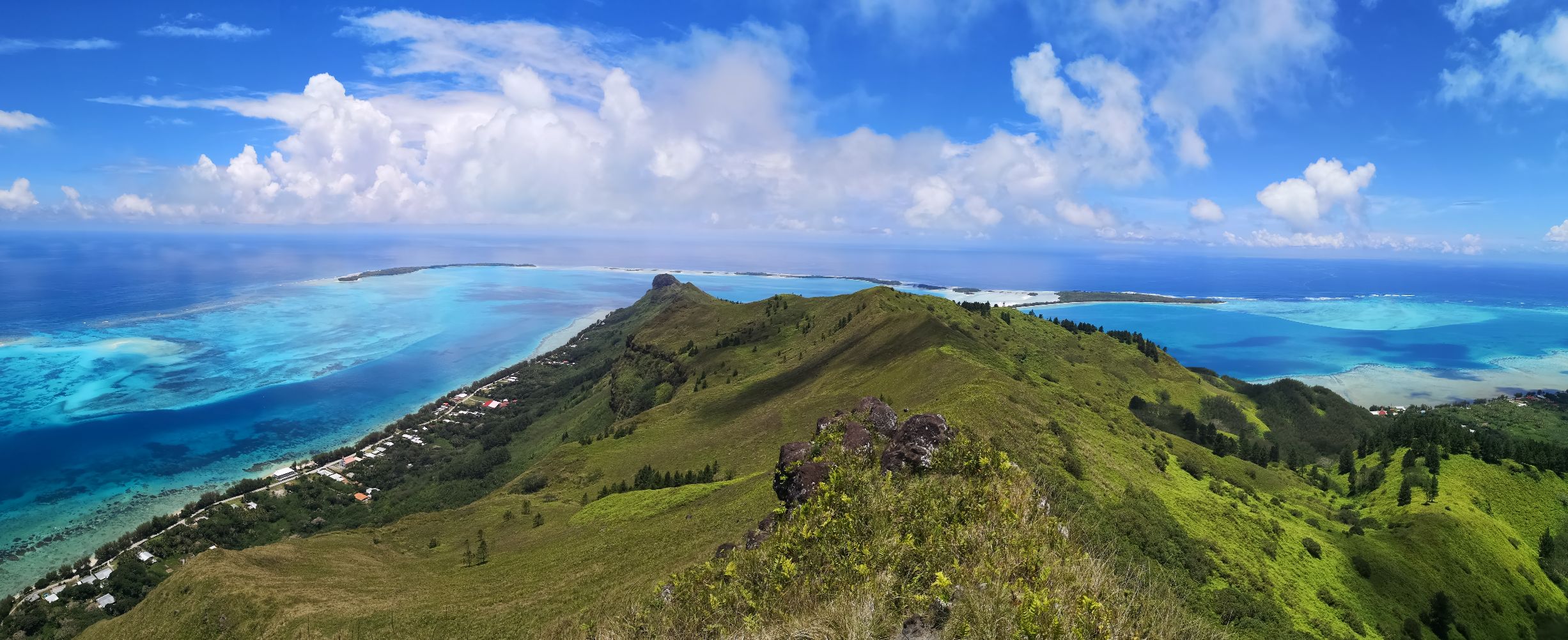 Après 2 h, nous atteignons un premier sommet qui permet d’avoir des panoramas exceptionnels sur le lagon.