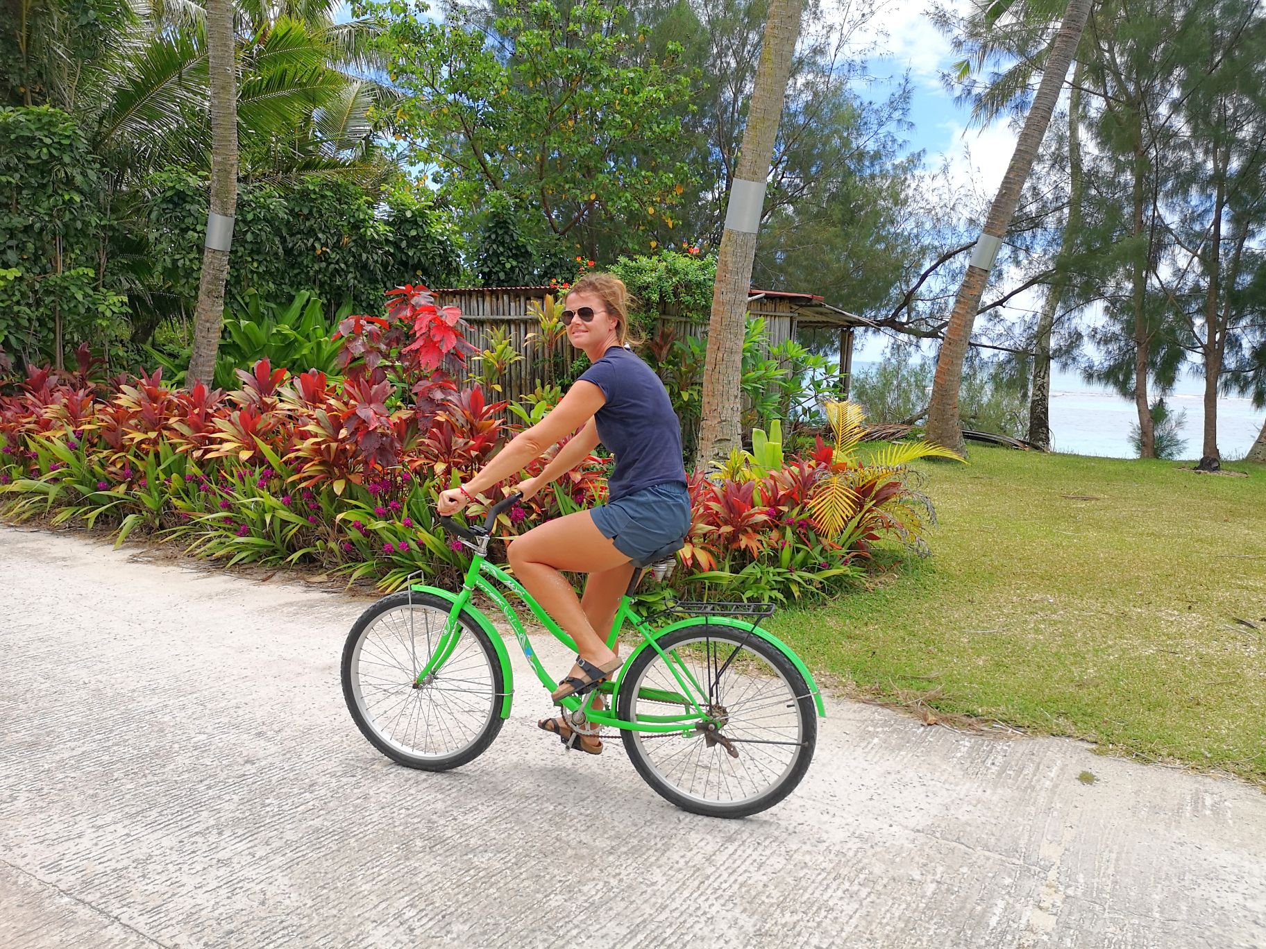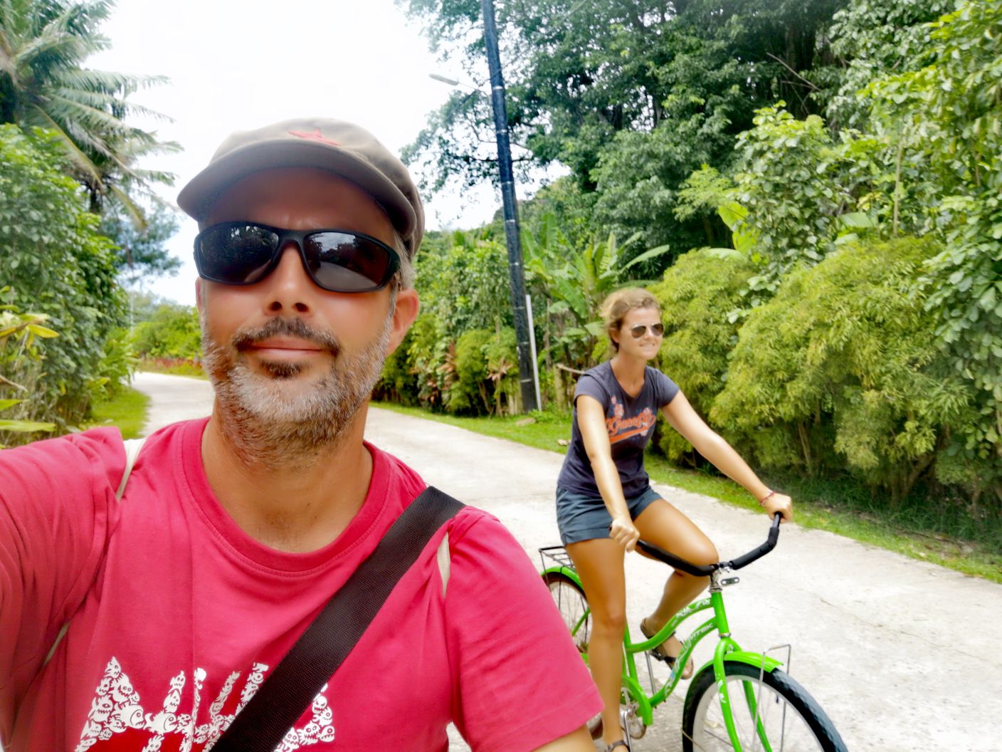 C’est tout courbaturés que le lendemain nous chevauchons nos vélos à rétropédalage pour faire le tour de l’île.