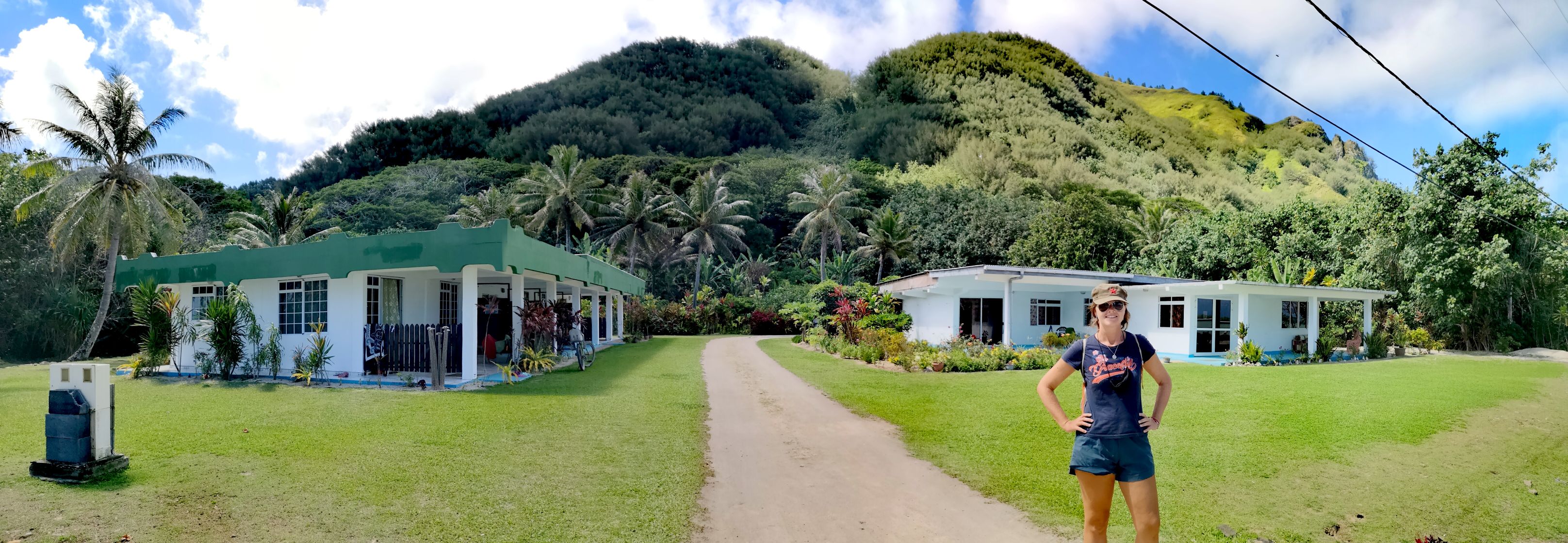 Odile, l’adorable gérante de notre pension Ataha nous accueille avec des colliers de fleurs. J’en profite pour expliquer à Alexane qu’il va falloir qu’elle se fasse à l’idée de ne bientôt plus en recevoir 😀.
